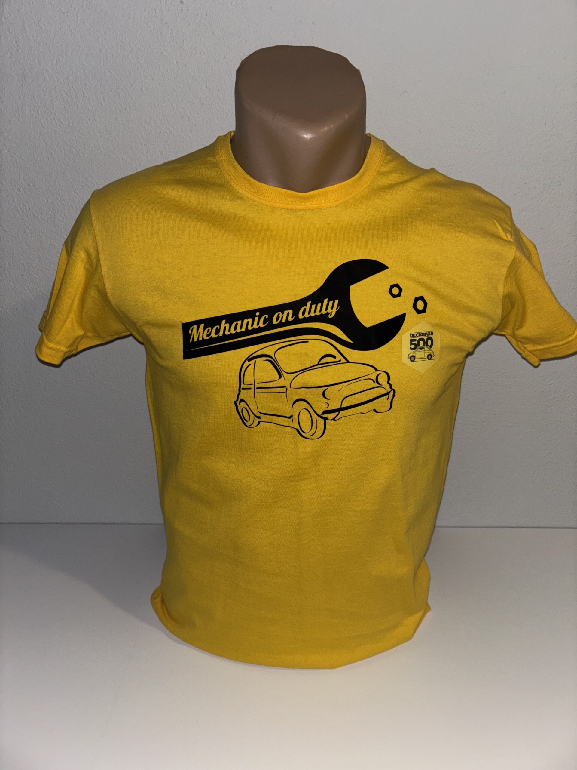 Geel kinder T-shirt met Club van 500 logo en leuke bedrukking. kinder T-shirts vallen groot